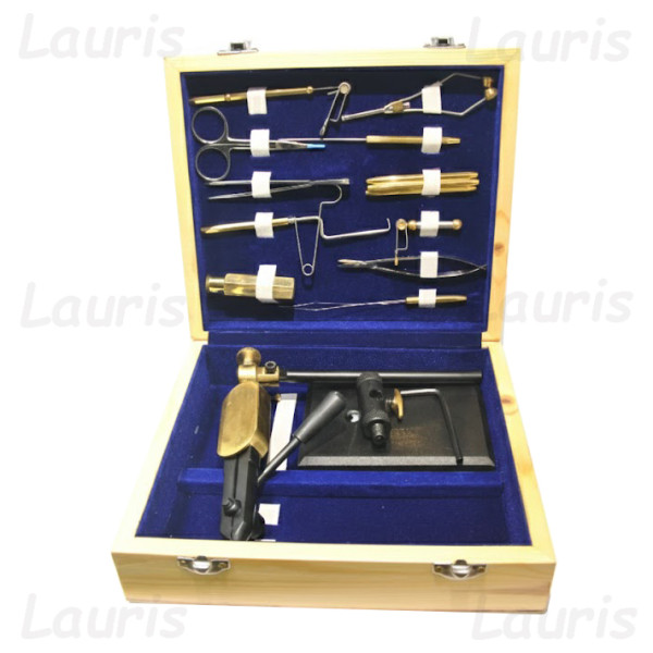 Acest Kit Profesional pentru legat muște reprezintă varianta completă și ultra-echipată a setului de montaj, fiind conceput pentru entuziaștii care doresc să treacă la un nivel avansat de precizie și eficiență. Prezentat într-o cutie de lemn mai spațioasă, cu interior de catifea albastră, acest kit integrează unelte specializate care acoperă aproape toate tehnicile complexe de flytying. Majoritatea uneltelor au mânere hexagonale din alamă, care oferă o aderență superioară și un aspect estetic deosebit. Continut: -menghina Nameo Royal cu bază metalică grea de culoare neagră, care permite lucrul pe orice suprafață plană fără a fi nevoie de prindere mecanică -clema articulata pentru hackle - mare -clema articulata pentru hackle - mica -foarfeca standard -foarfeca arcuita -tensor cu cap ceramic -penseta -aliniator par (hair stacker) -tragator ata -ac de montaj pentru aplicarea lacului sau separarea fibrelor -set de trei înodătoare "Half Hitch" din alamă,cu șase orificii de dimensiuni diferite pentru finalizarea oricărui tip de muscă -finisor nod -cheie hexagon (imbus) pentru ajustarea fină a componentelor mobile ale menghinei -cutie lemn dotată cu balamale și închizători metalice duble, care asigura transportul în siguranță al întregului inventar